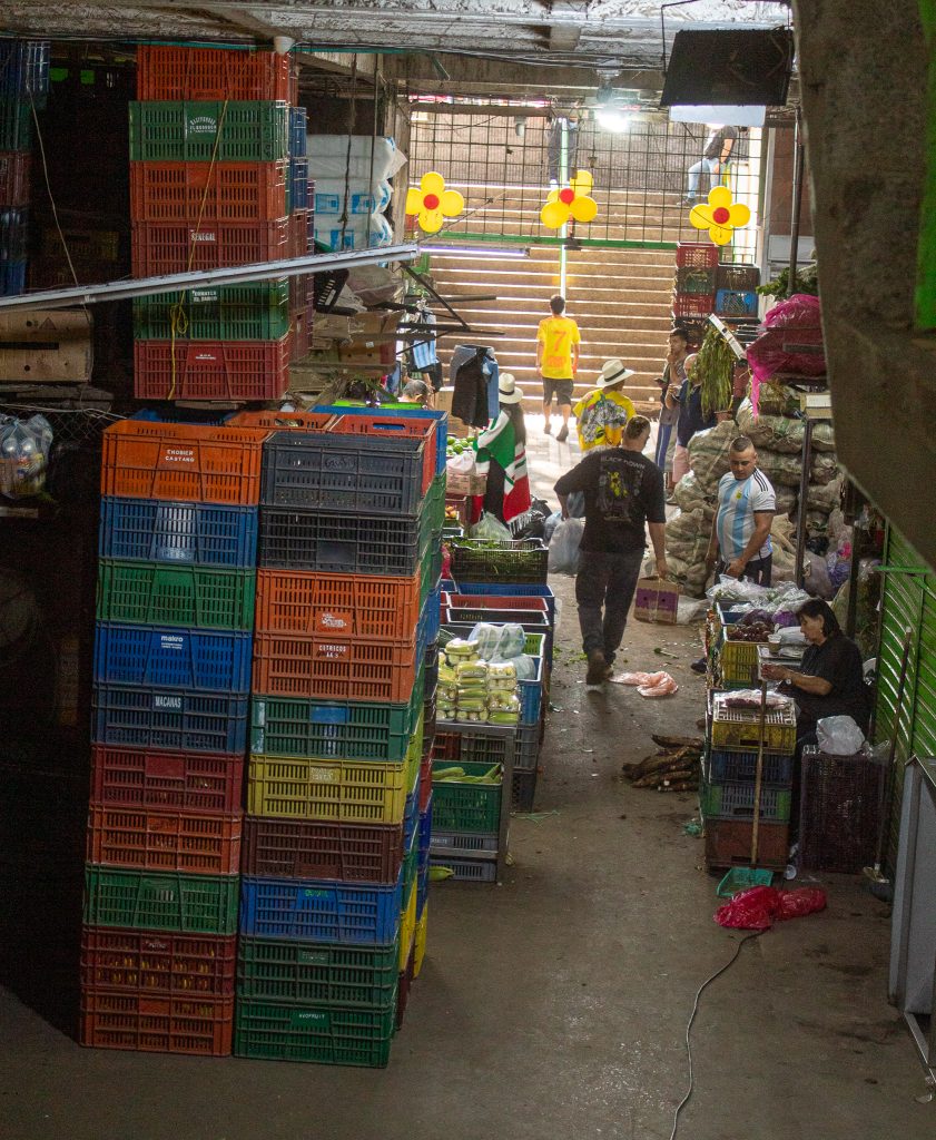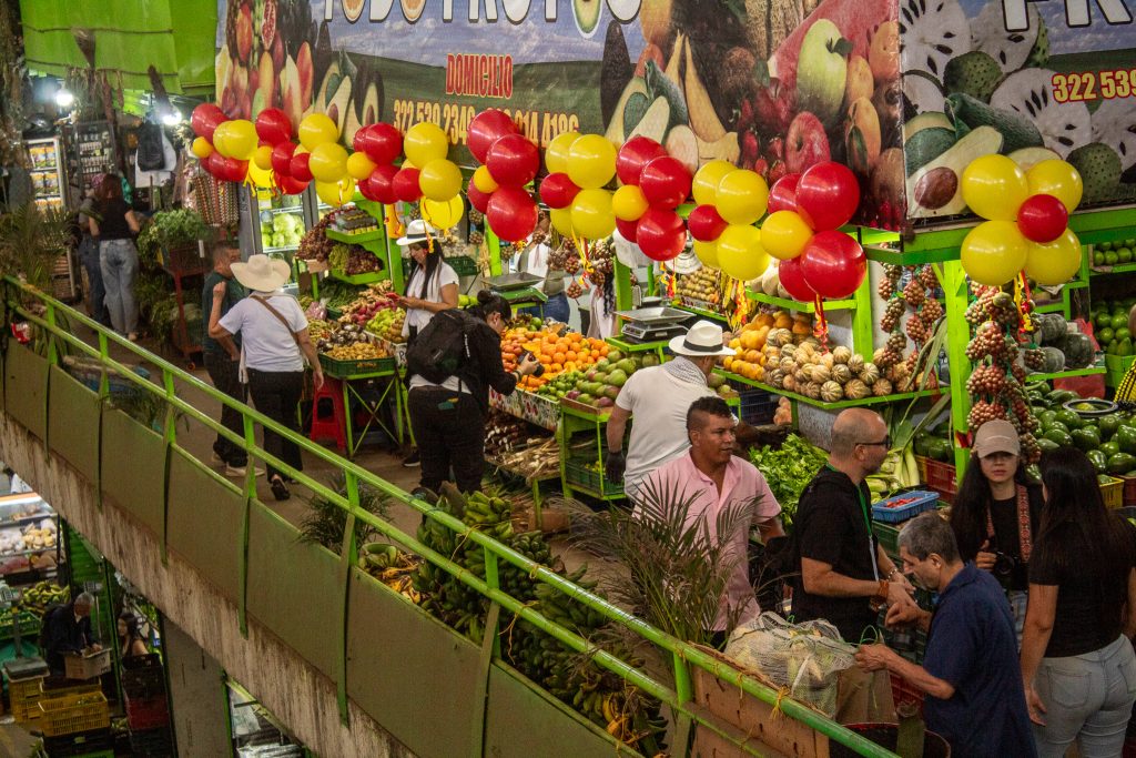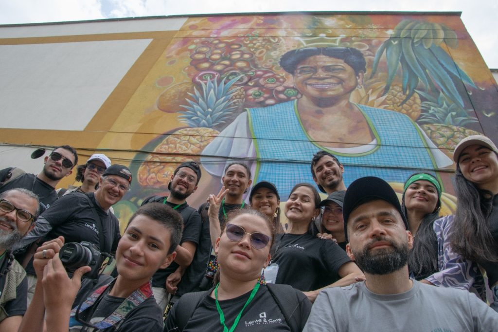 Aunque importancia no siempre es sinónimo de reconocimiento, y la plaza, en sus inicios, enfrentó un periodo de baja visibilidad en el que no se le dio la implicancia simbólica que merece por su noble labor. En los últimos años, sin embargo, desde los colectivos artísticos y culturales se ha impulsado una reivindicación de su valor. Uno de los tributos más visibles es el mural de doña Yolanda, en el costado de la carrera 10. Pintado en 2022 por el colectivo Revolucionarte, aparece rodeada de frutos y colores, con la misma sonrisa que muchos fotógrafos encontrarían luego entre los vendedores. Justamente al costado de ese mural se reunieron los participantes para dar inicio a esta segunda jornada, cuyo propósito era rendir un tributo fotográfico a este lugar icónico.